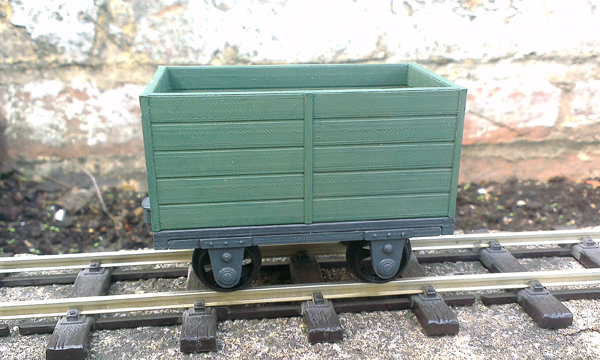3D Printed wagon kit, with narrowgauge central buffer chassis.
